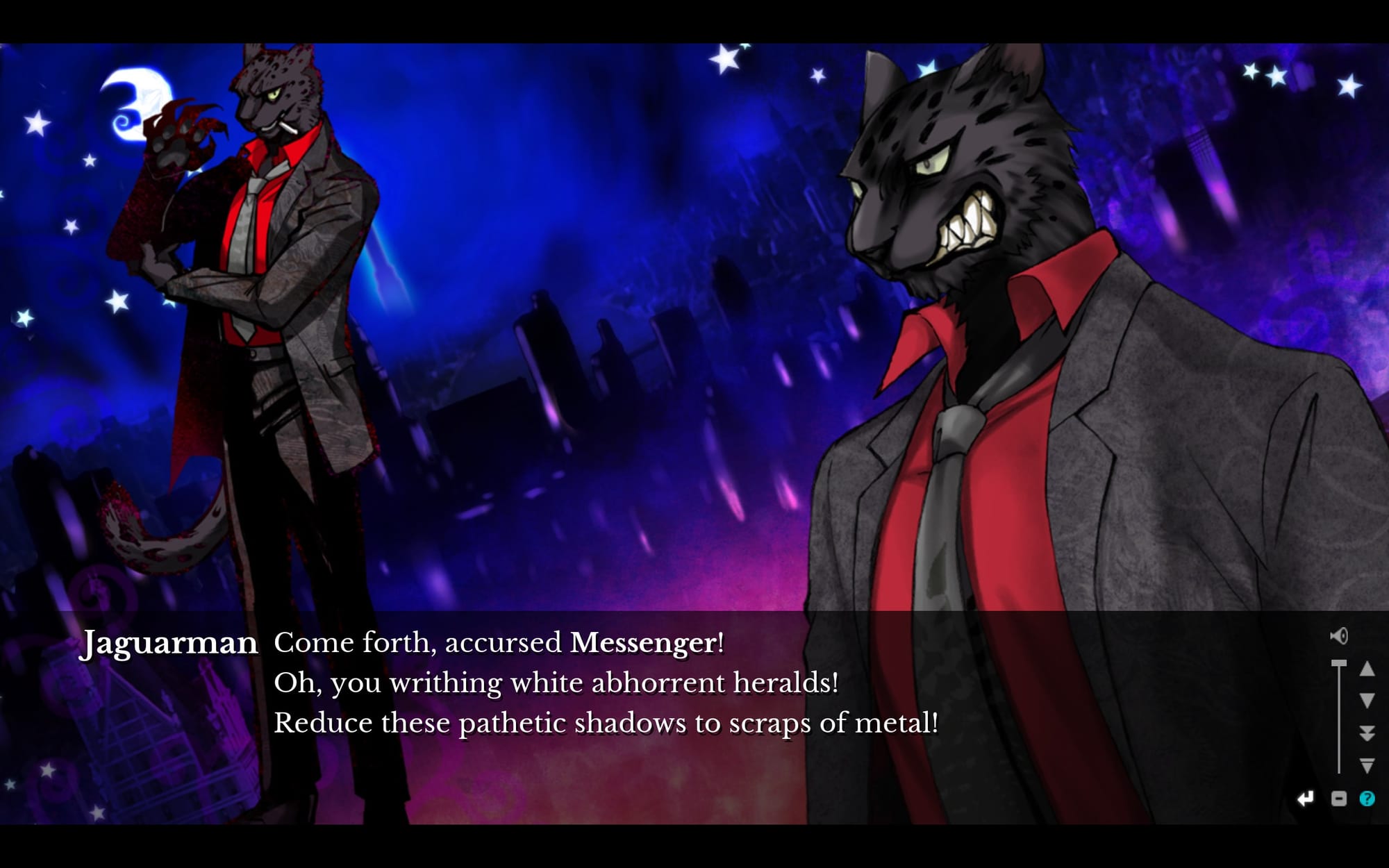 Sona-Nyl of the Violet Shadows was finally released in English on December 7th 2023. I’ve been waiting eagerly for this day since the project was first announced in 2016. You might ask, “what game is worth waiting seven years for?” I won’t pretend that Sona-Nyl is for everybody. But it’s just about perfect for me. Part gaslamp fantasy, part Utena riff, this is an aesthetically gorgeous and structurally ambitious visual novel. There’s a rude jaguar man, a walking suit of luggage and a version of Ernest Hemingway that’s just a big talking head.