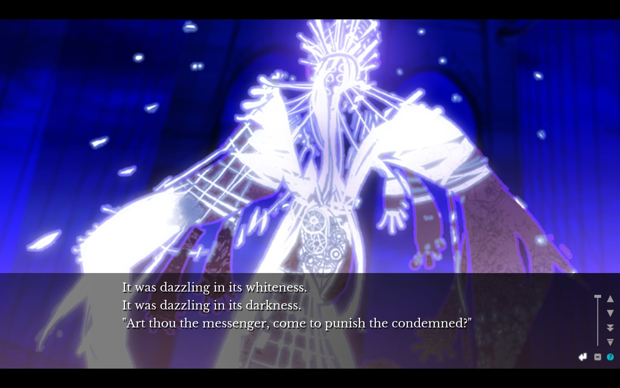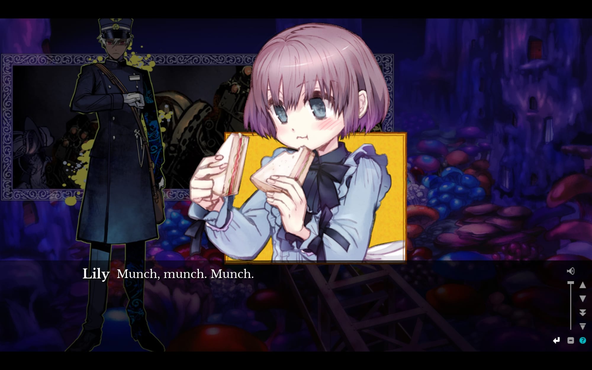 But like I mentioned above, Sona-Nyl is two games in one, and while the PC version runs on Liar-soft's in-house engine, the console version was ported to a different engine entirely. Refrain's scripts use a modified version of the Kirikiri engine, also used for titles like The House in Fata Morgana and Fate/stay night. And while I have plenty of experience with that engine, it was my first time porting Kirikiri code to Ren'Py--the engine that Sona-Nyl's English release runs on.