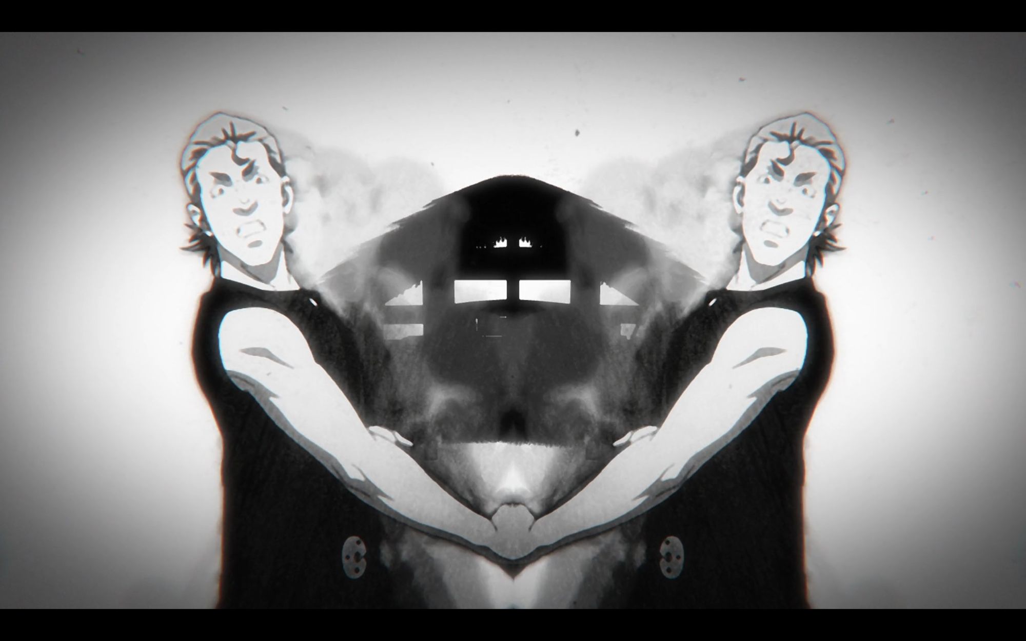 The real give-away though is the use of symmetry. Nearly every anime opening riffing on Skyfall has this.